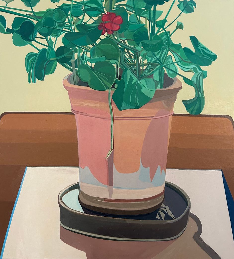 Geranium in the Studio, oil on canvas, 110x100cm,2025